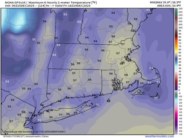 Temperatures will get well into the 50s on Friday. Image provided by Weathermodels.com