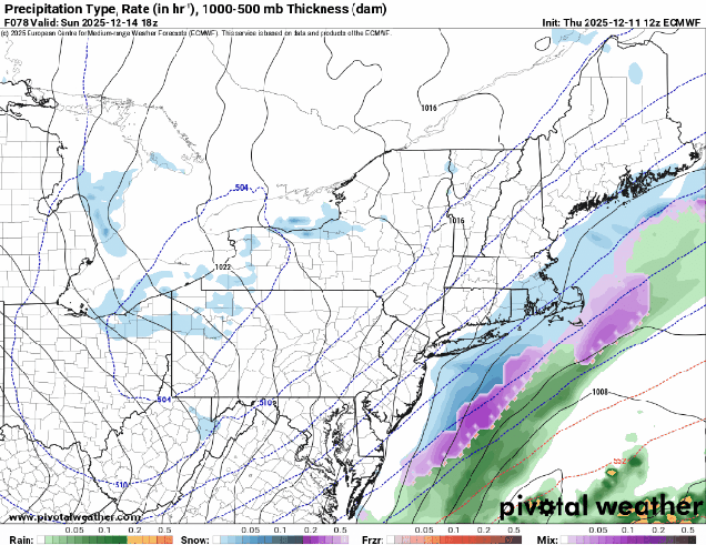 Will it snow on Sunday? The models are not in agreement. Images provided by Pivotal Weather.