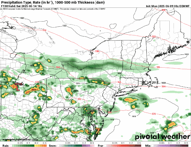 For now, the models are indicating that Saturday may stay dry around here. Images provided by Pivotal Weather,