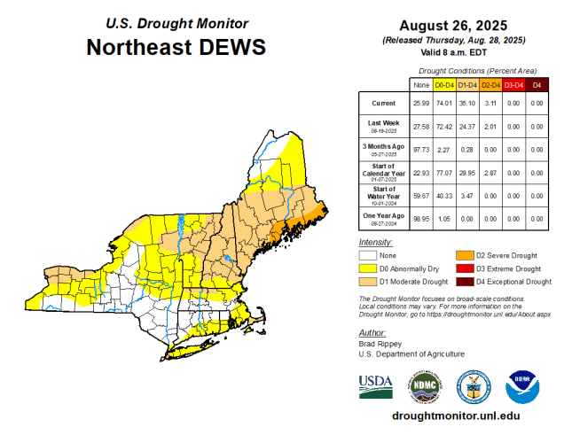 Drought conditions are expanding and worsening across the Northeast. Image provided by the National Drought Mitigation Center.