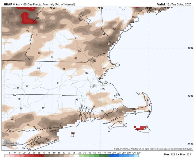Drought conditions are beginning to re-emerge, especially in SE Massachusetts and Cape Cod. Image produce by the National Drought Mitigation Center.