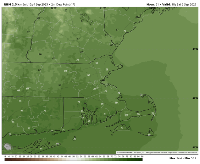 Saturday night: Cloudy with showers and thunderstorms likely. Low 57-64, possibly a little warmer across southeastern Massachusetts and Cape Cod.